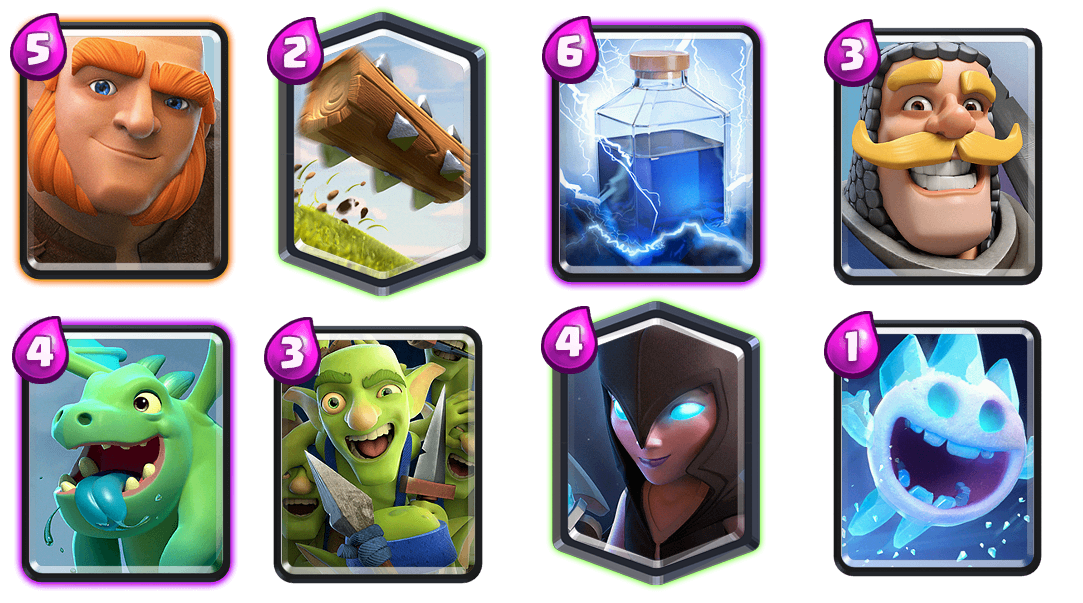 - Haora vamos a añadir unidades pequeñas que se suelen usasr para distraer y para mata a tanques, podeis elegir: espiritu de hielo,guardias,pandilla de duendes,ejercito de esqueletos,arqueras,esbirros,orda de esbirros,duendes,duendes con lanza,esqueletos,murcielagos,duende lanza dardos,golem de hielo,espiritus de fuego,barril de duendes (defensivo para distraer) o barabaros (en caso de que os quede muy barata la baraja). Tener en cuante que teneis que elegir lo que sea mas counter de lo que se esta jugando en vuestra arena, nosotros hemos elegido la pandilla de duendes.Podeis elegir varias tropas pequeñas si quereis ciclar mas rapido.